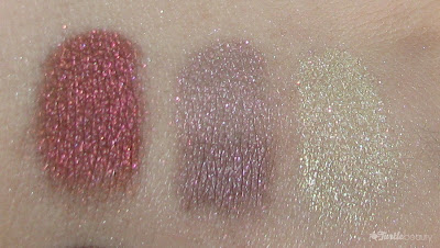 Debauchery: A gold that is nearly olive. I say nearly because the description called it 'olive', when it's definitely more yellow/gold. Bit confused on that, just like with Wendigo. Still very pretty as it's got some pink/red bits in it.